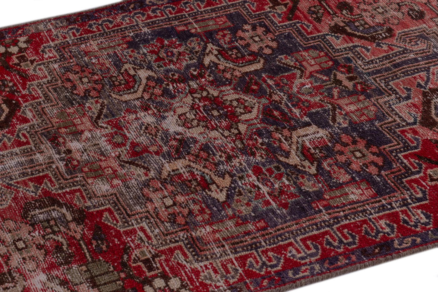This one-of-a-kind, handmade vintage rug has been carefully restored, cleaned; age-related wear and natural imperfections are present.