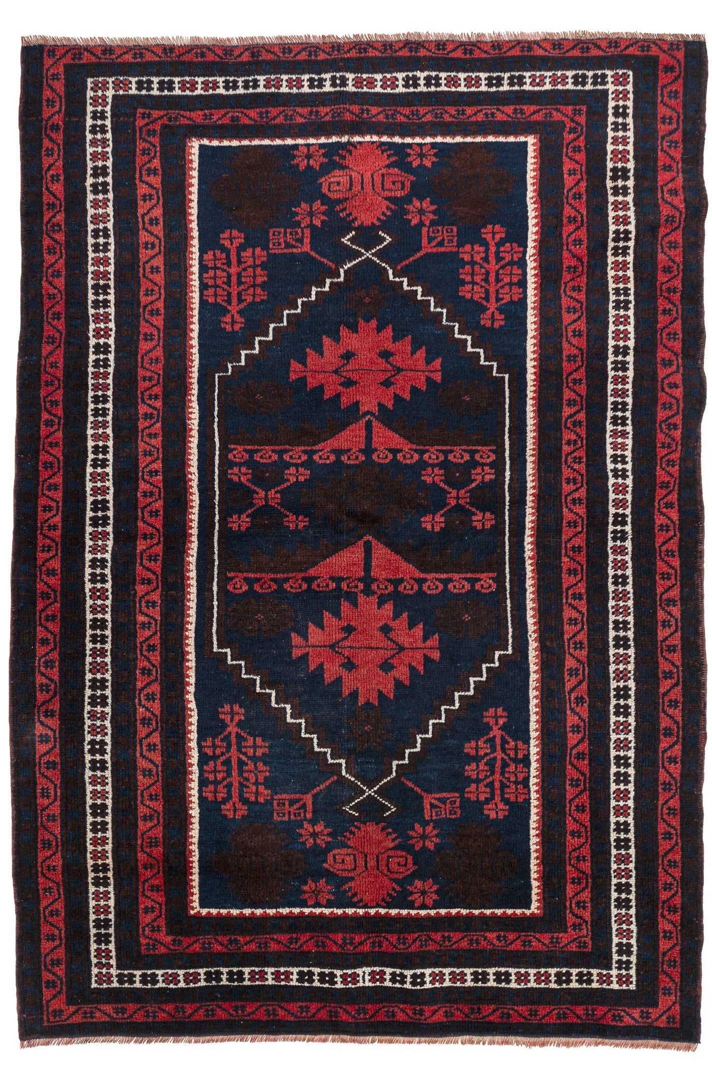 This one-of-a-kind, handmade vintage rug has been carefully restored, cleaned; age-related wear and natural imperfections are present.