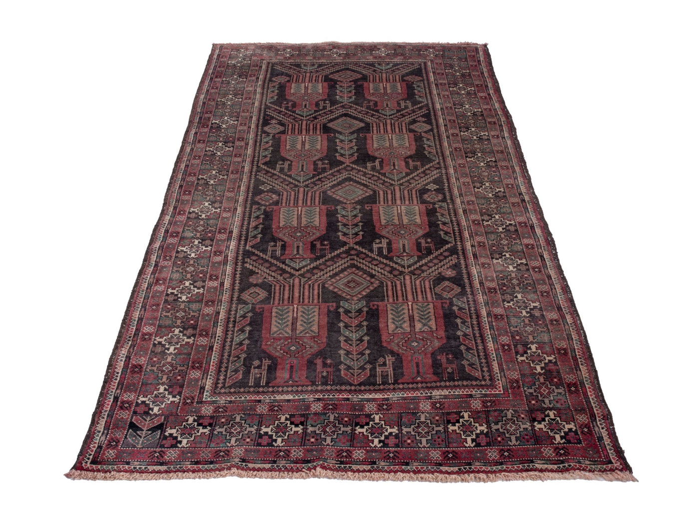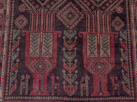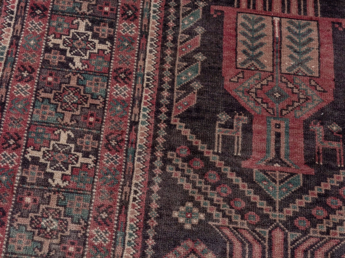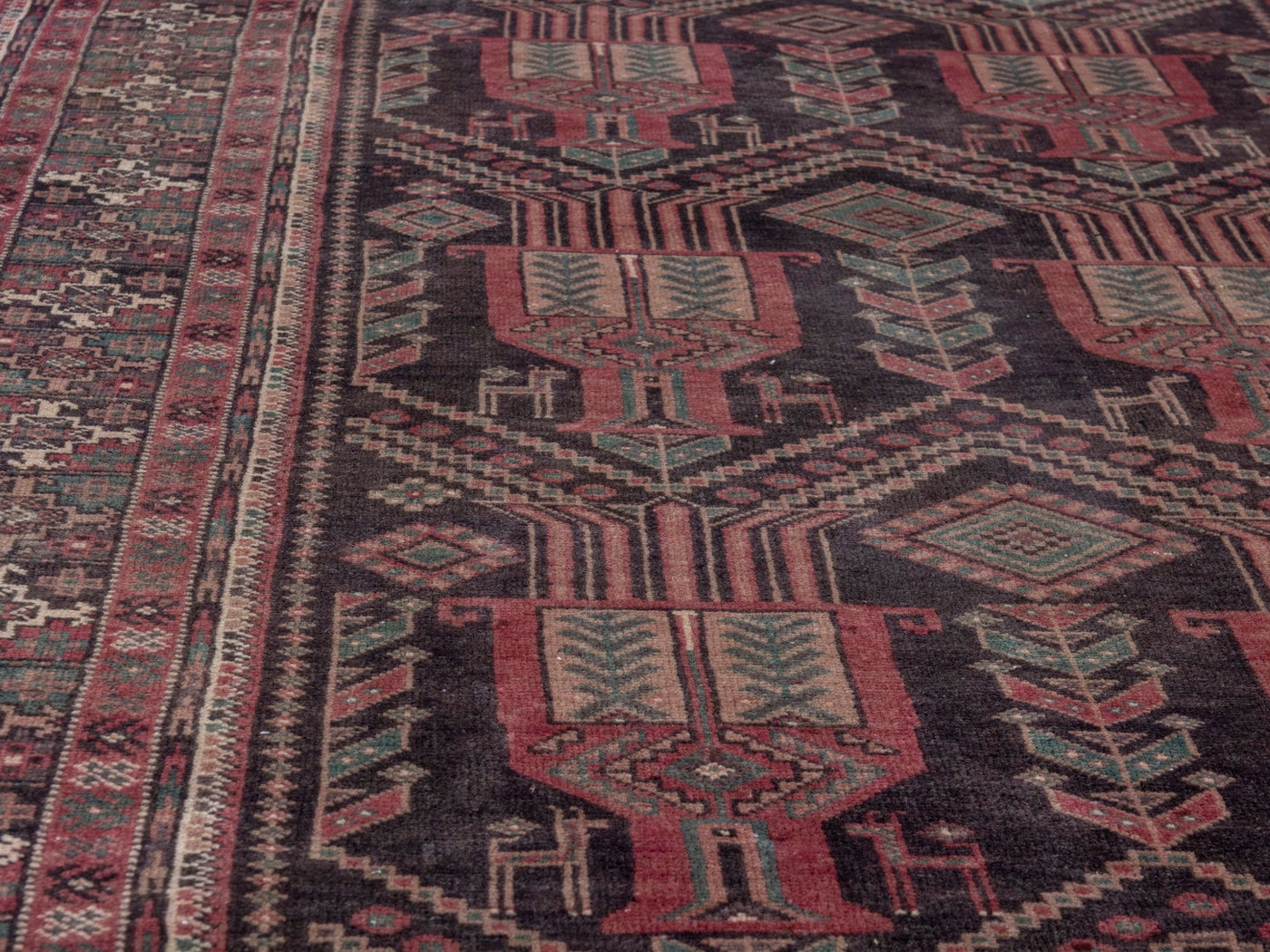 This one-of-a-kind, handmade vintage rug has been carefully restored, cleaned; age-related wear and natural imperfections are present.