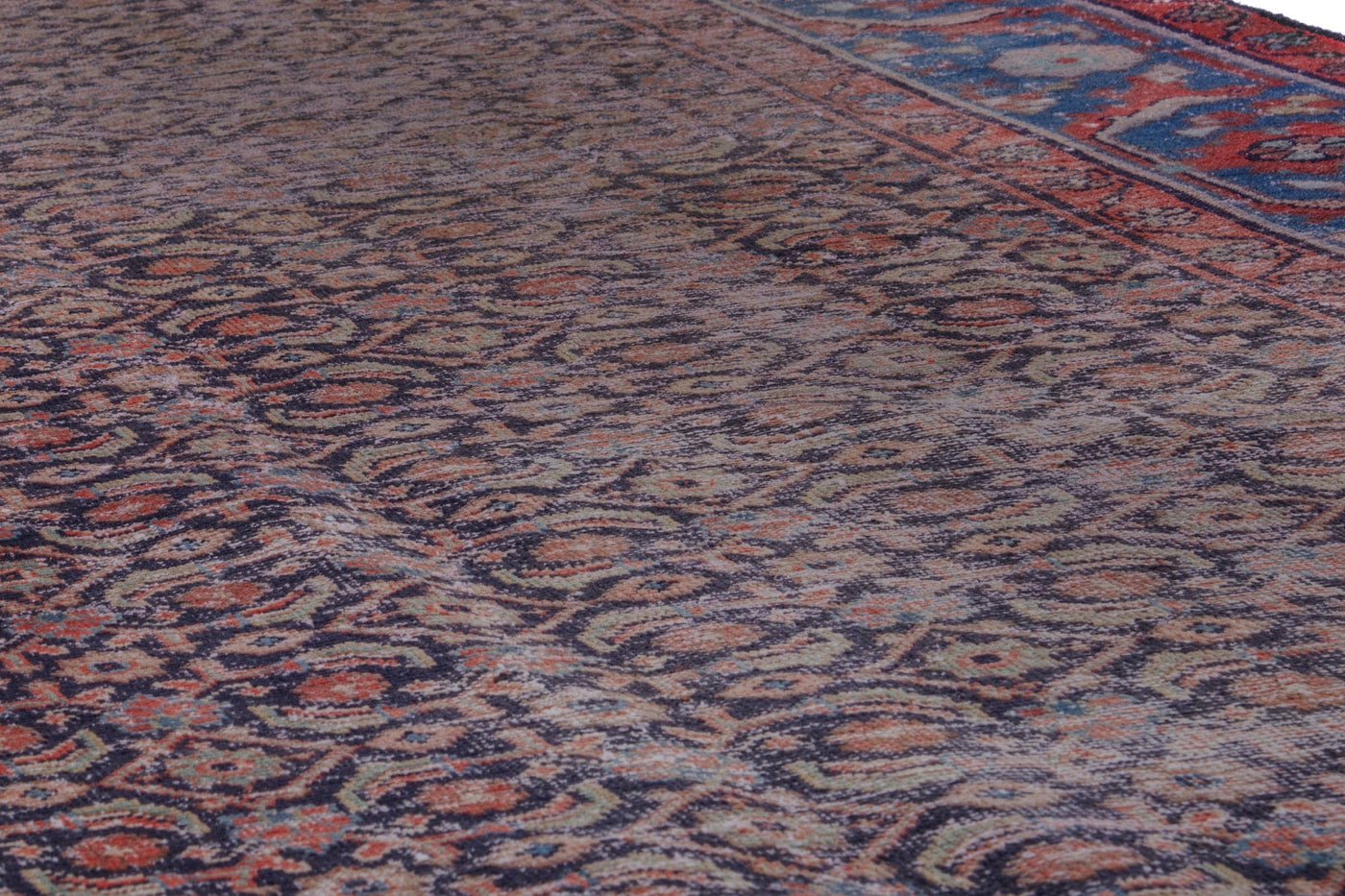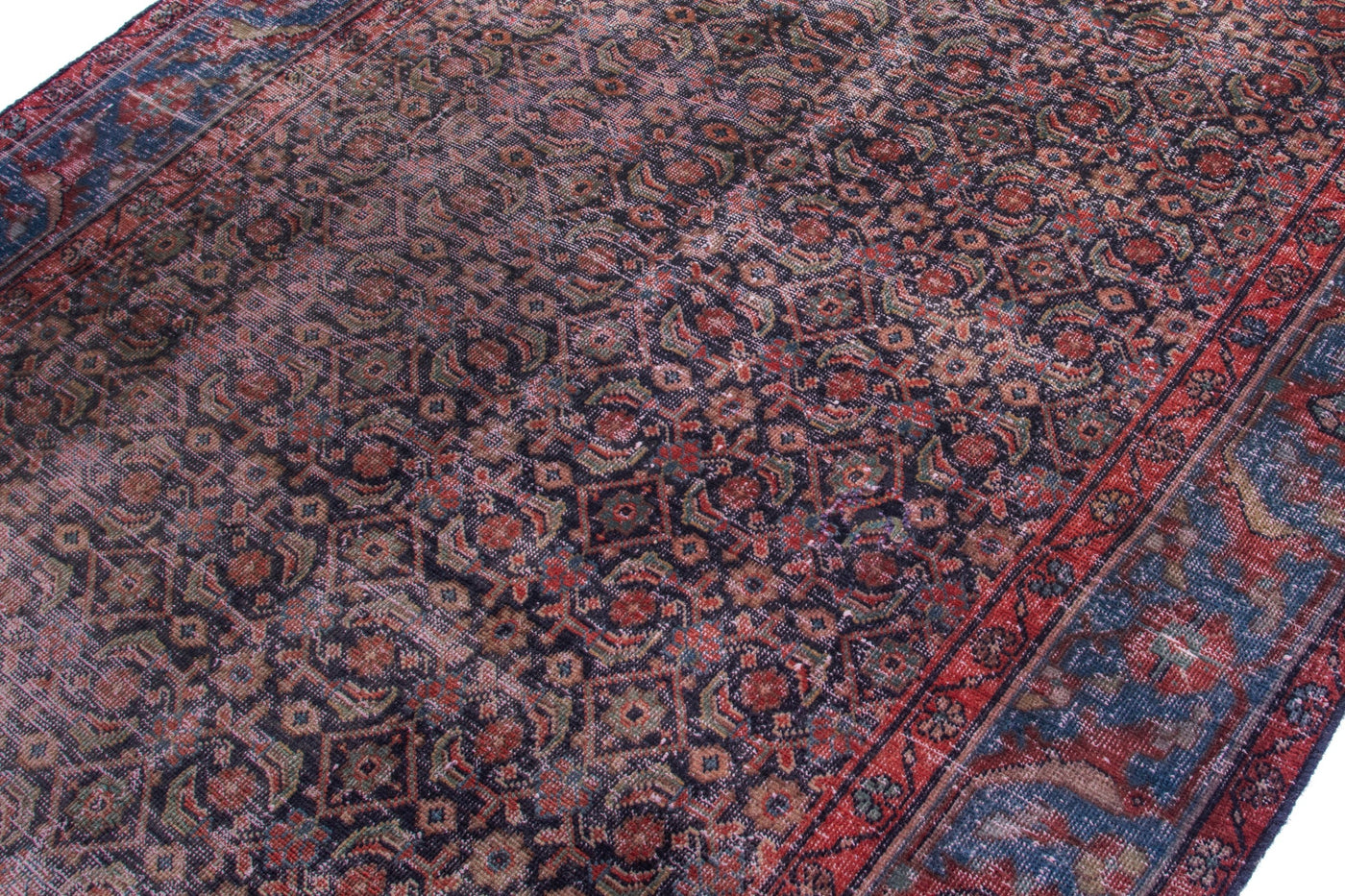 This one-of-a-kind, handmade vintage rug has been carefully restored, cleaned; age-related wear and natural imperfections are present.