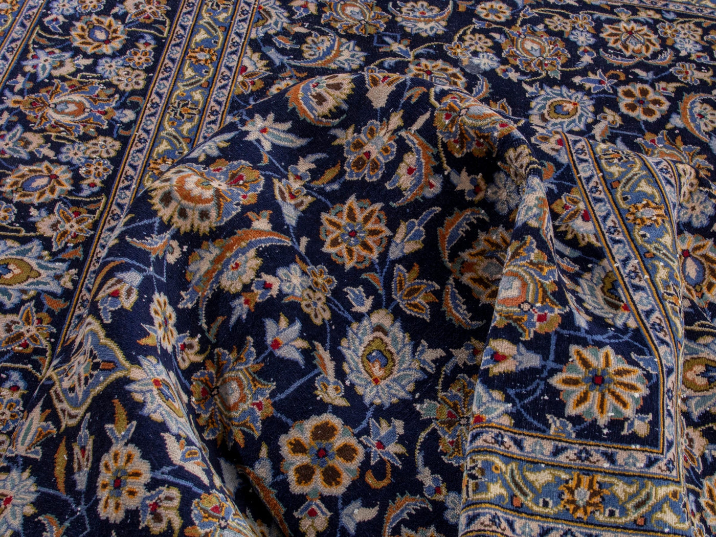 This one-of-a-kind, handmade vintage rug has been carefully restored, cleaned; age-related wear and natural imperfections are present.