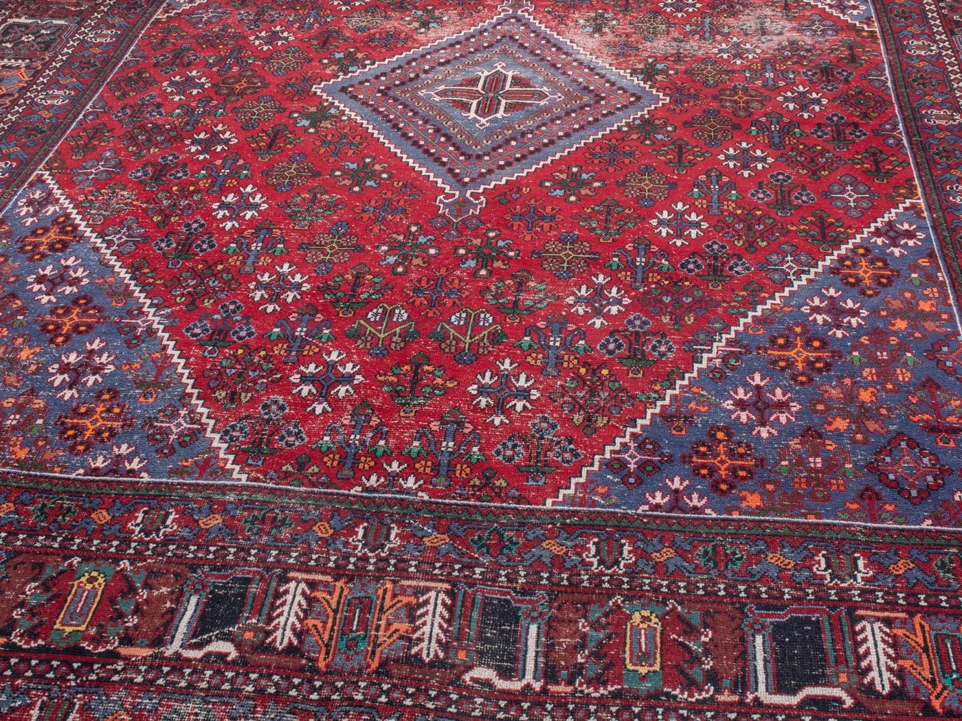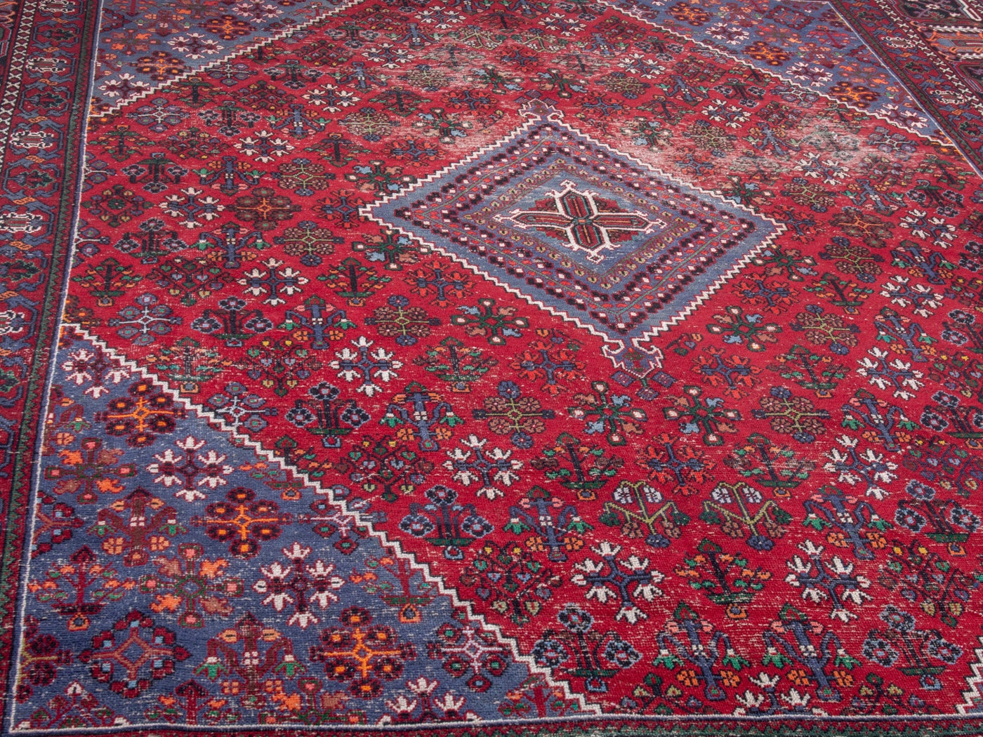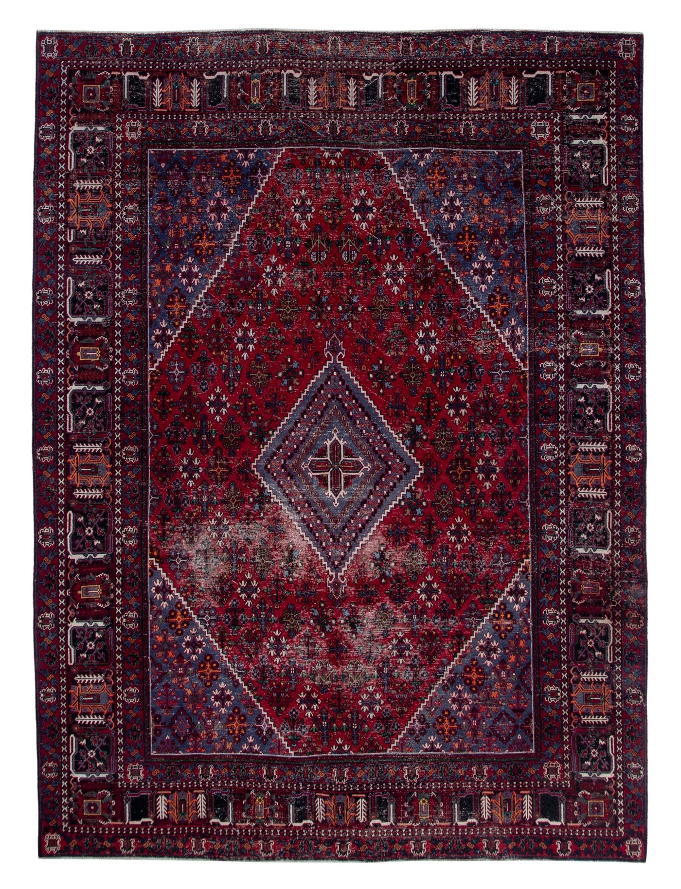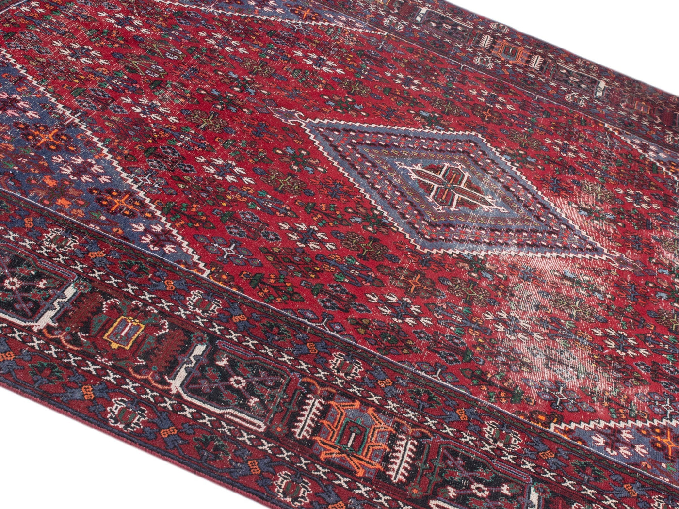 This one-of-a-kind, handmade vintage rug has been carefully restored, cleaned; age-related wear and natural imperfections are present.