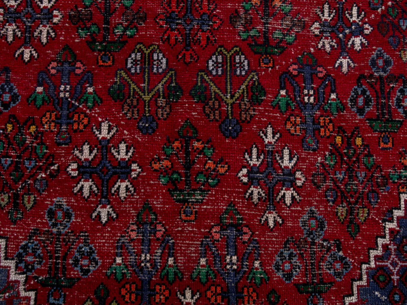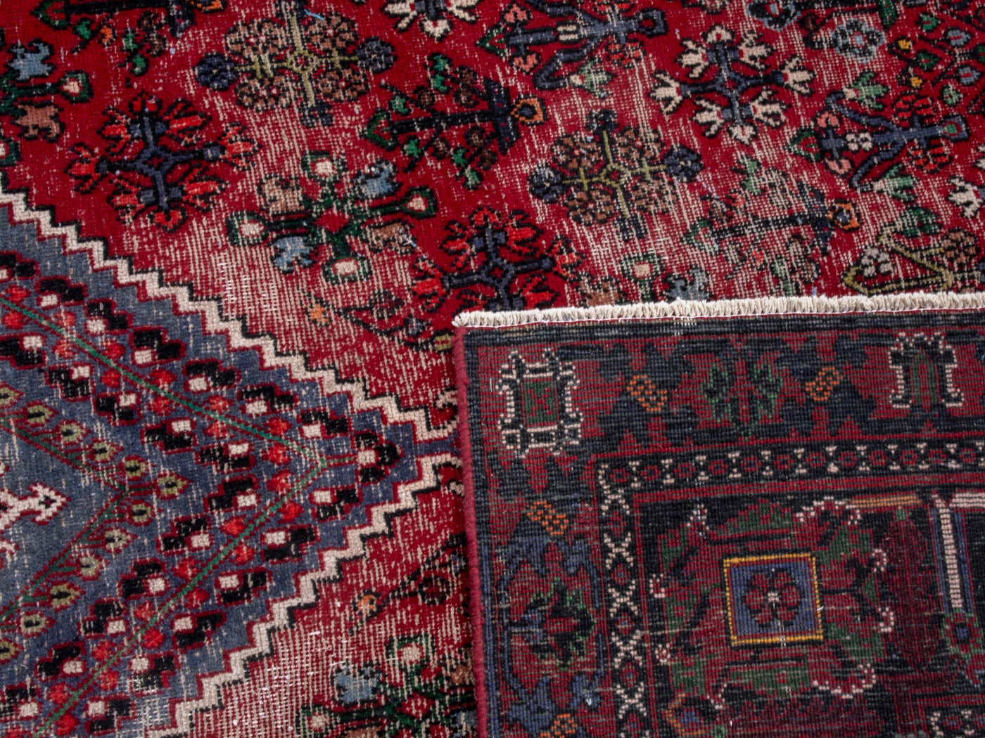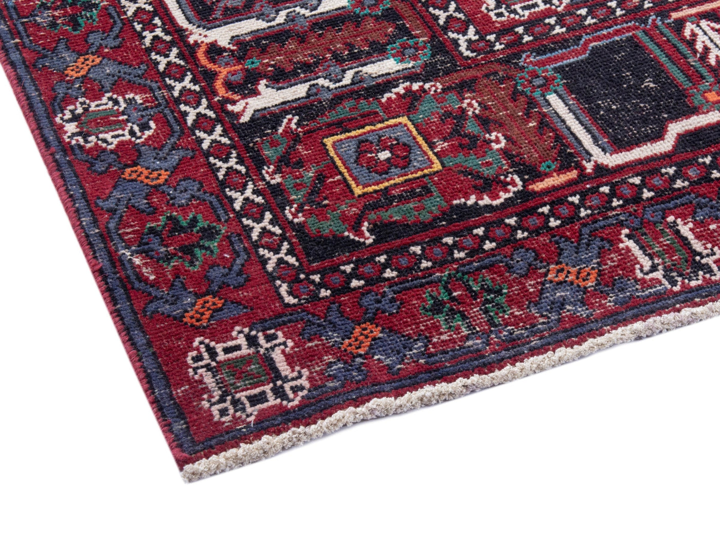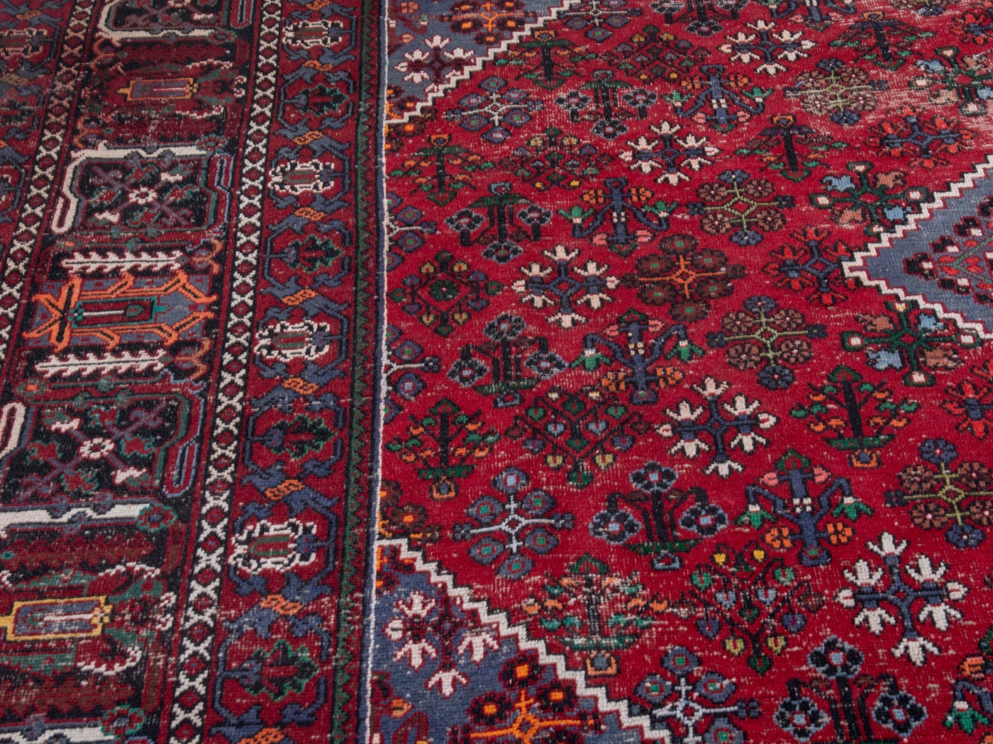 This one-of-a-kind, handmade vintage rug has been carefully restored, cleaned; age-related wear and natural imperfections are present.