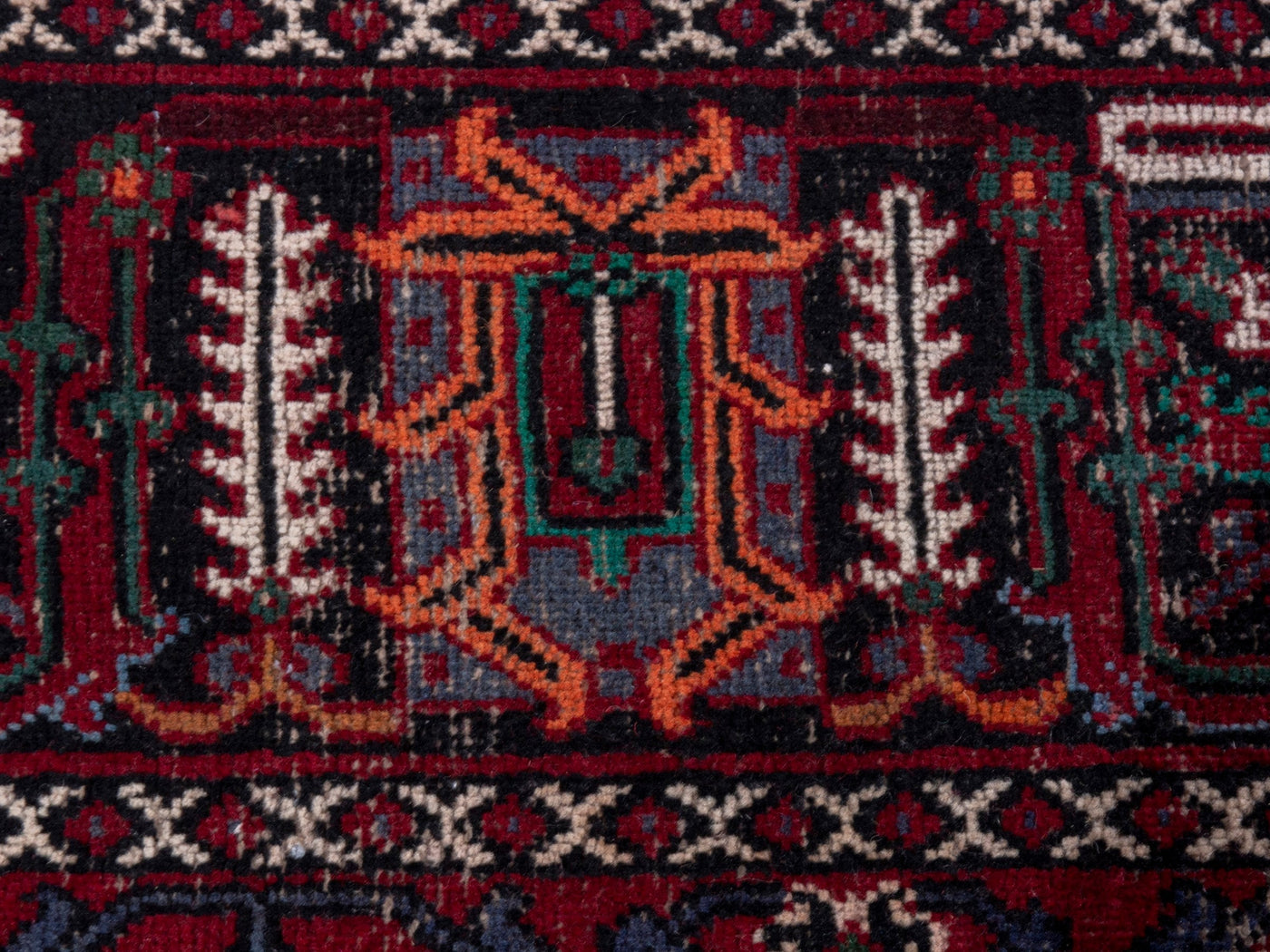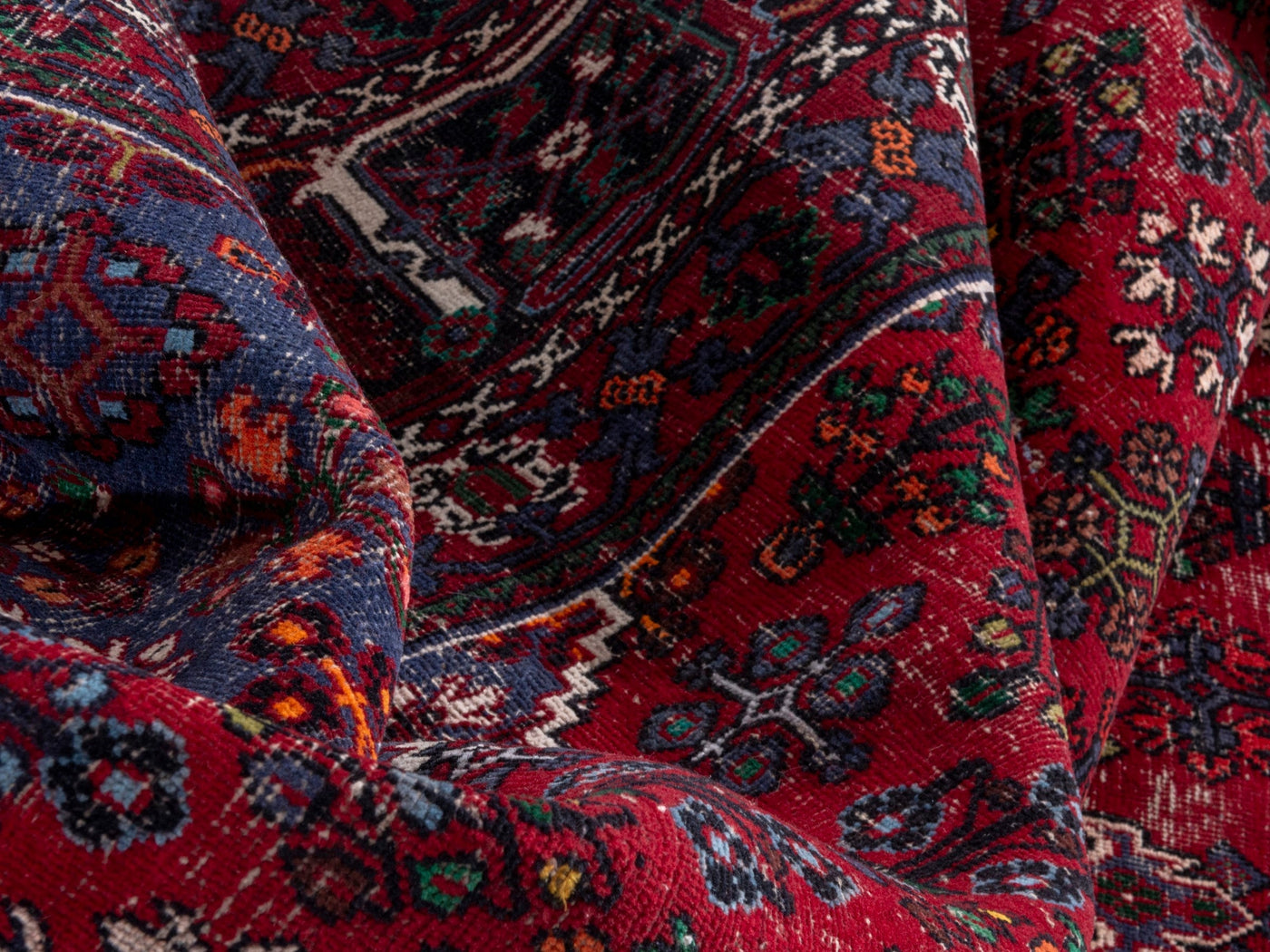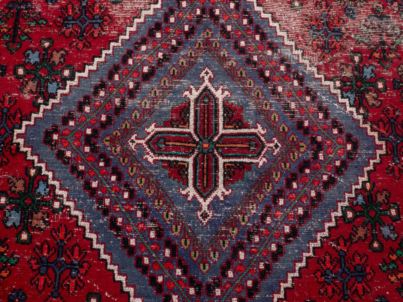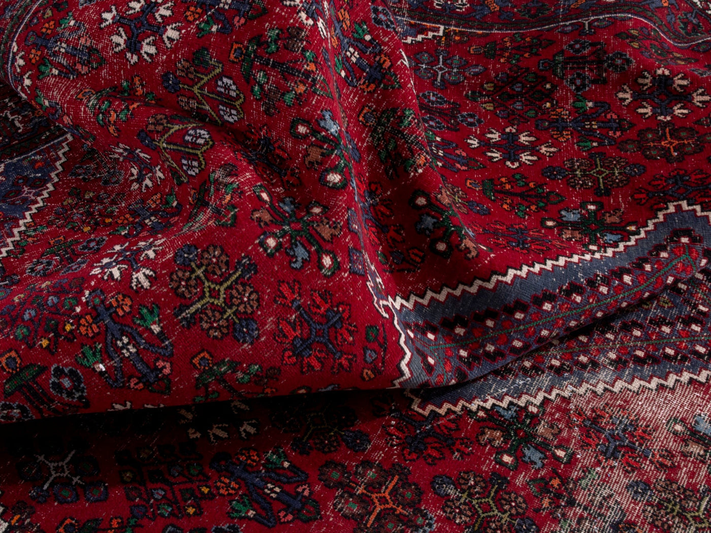 This one-of-a-kind, handmade vintage rug has been carefully restored, cleaned; age-related wear and natural imperfections are present.
