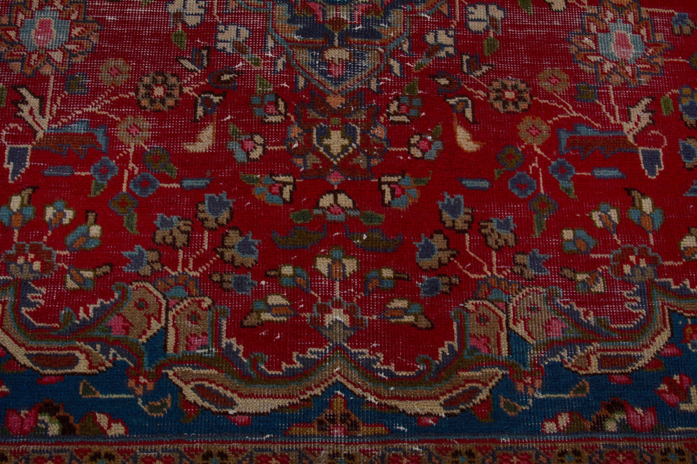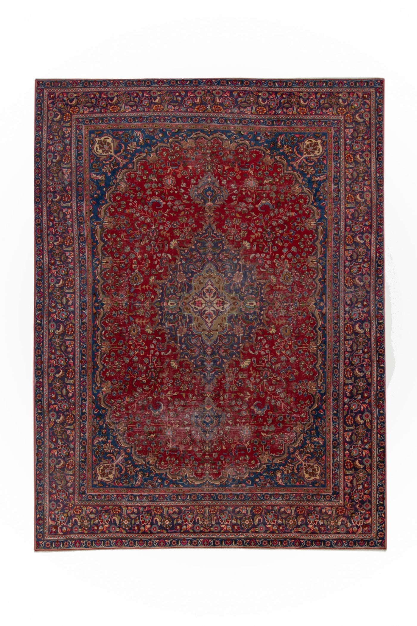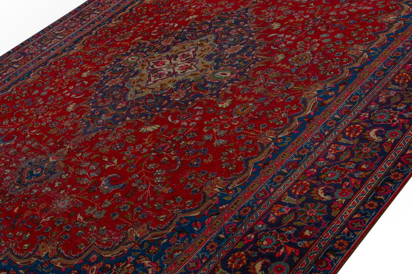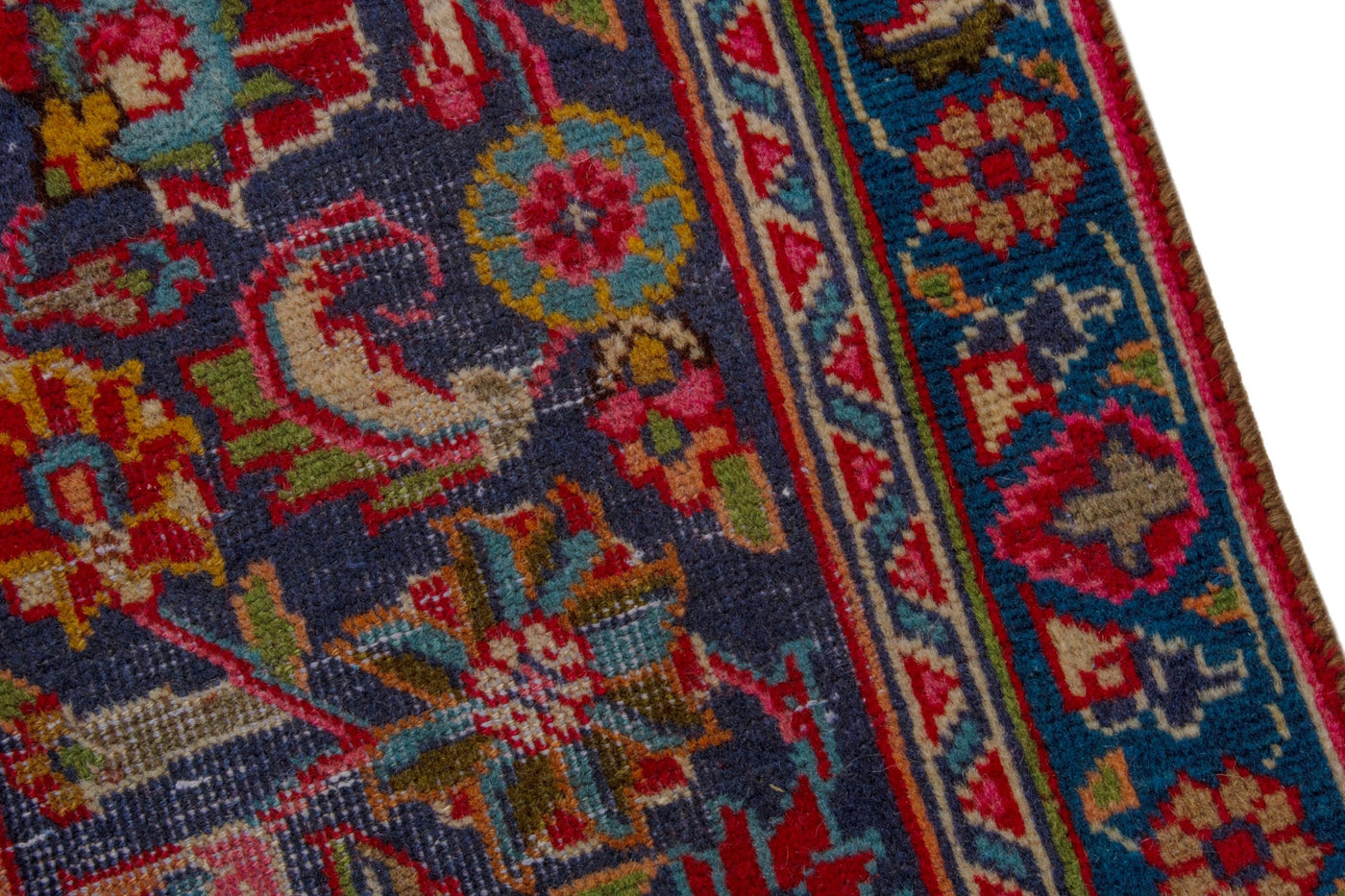This one-of-a-kind, handmade vintage rug has been carefully restored, cleaned; age-related wear and natural imperfections are present.