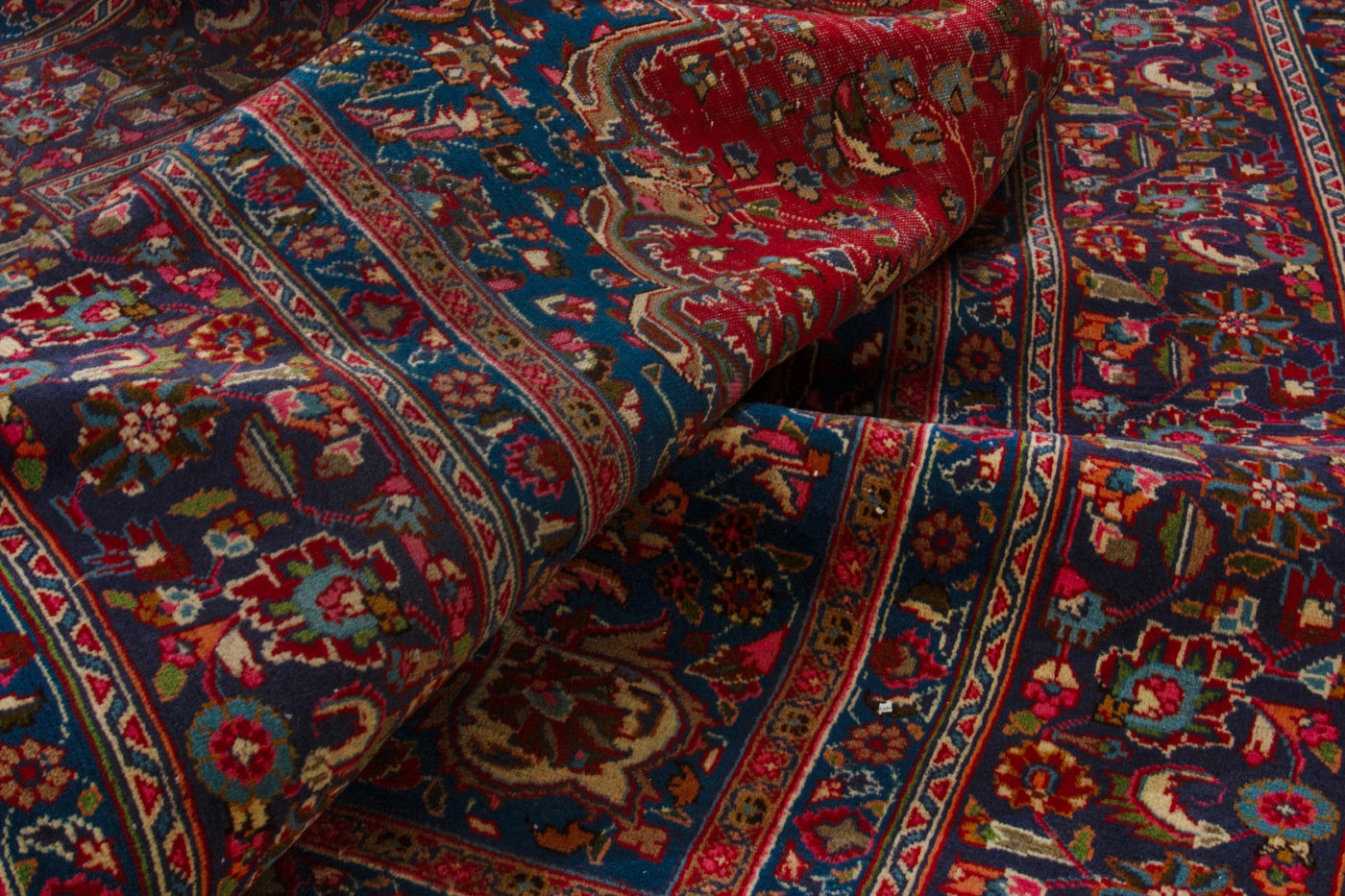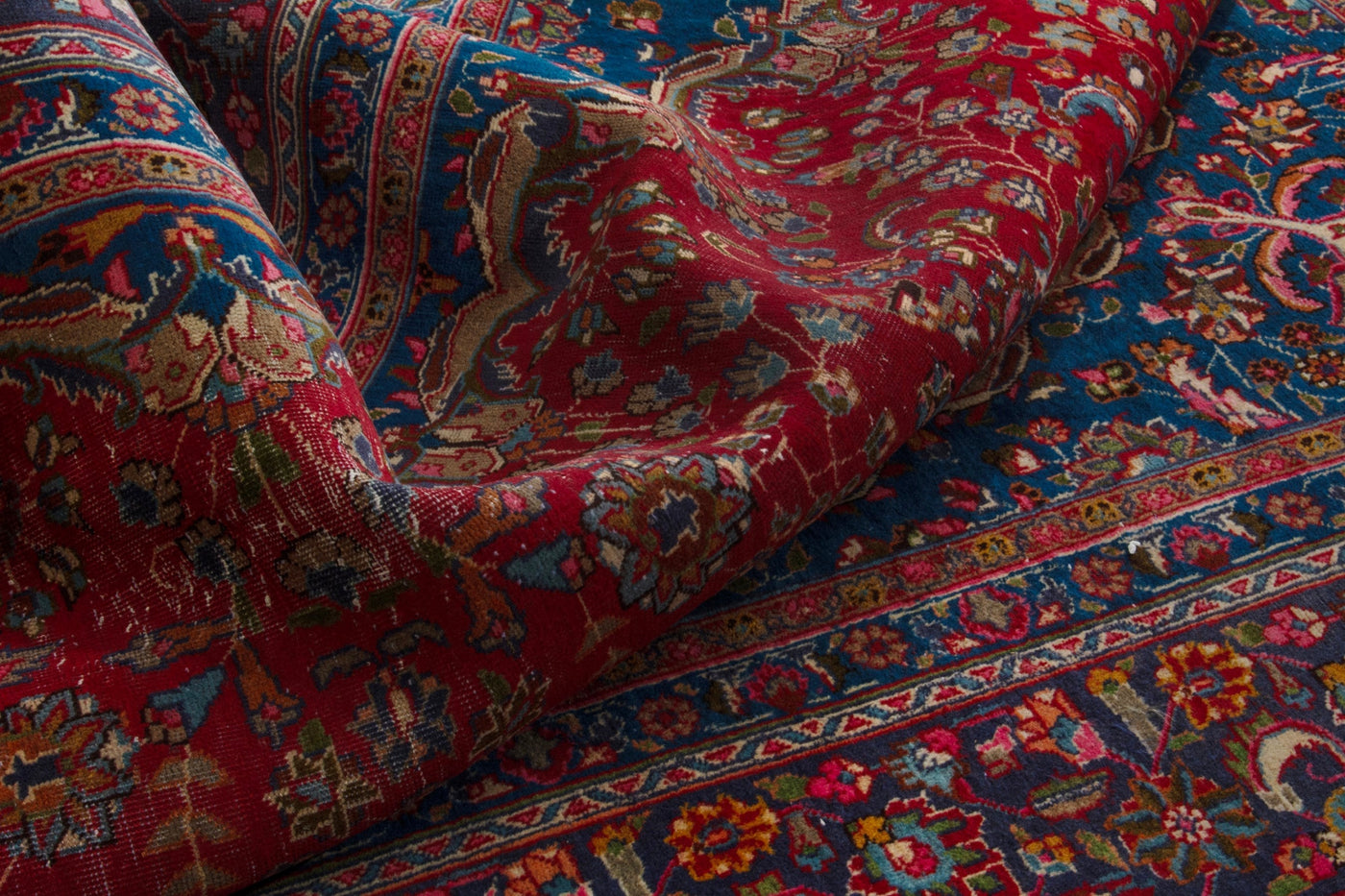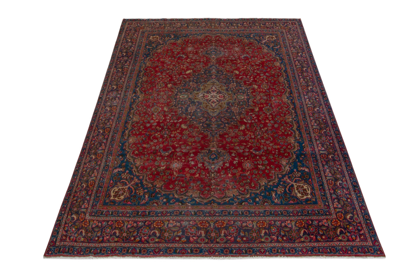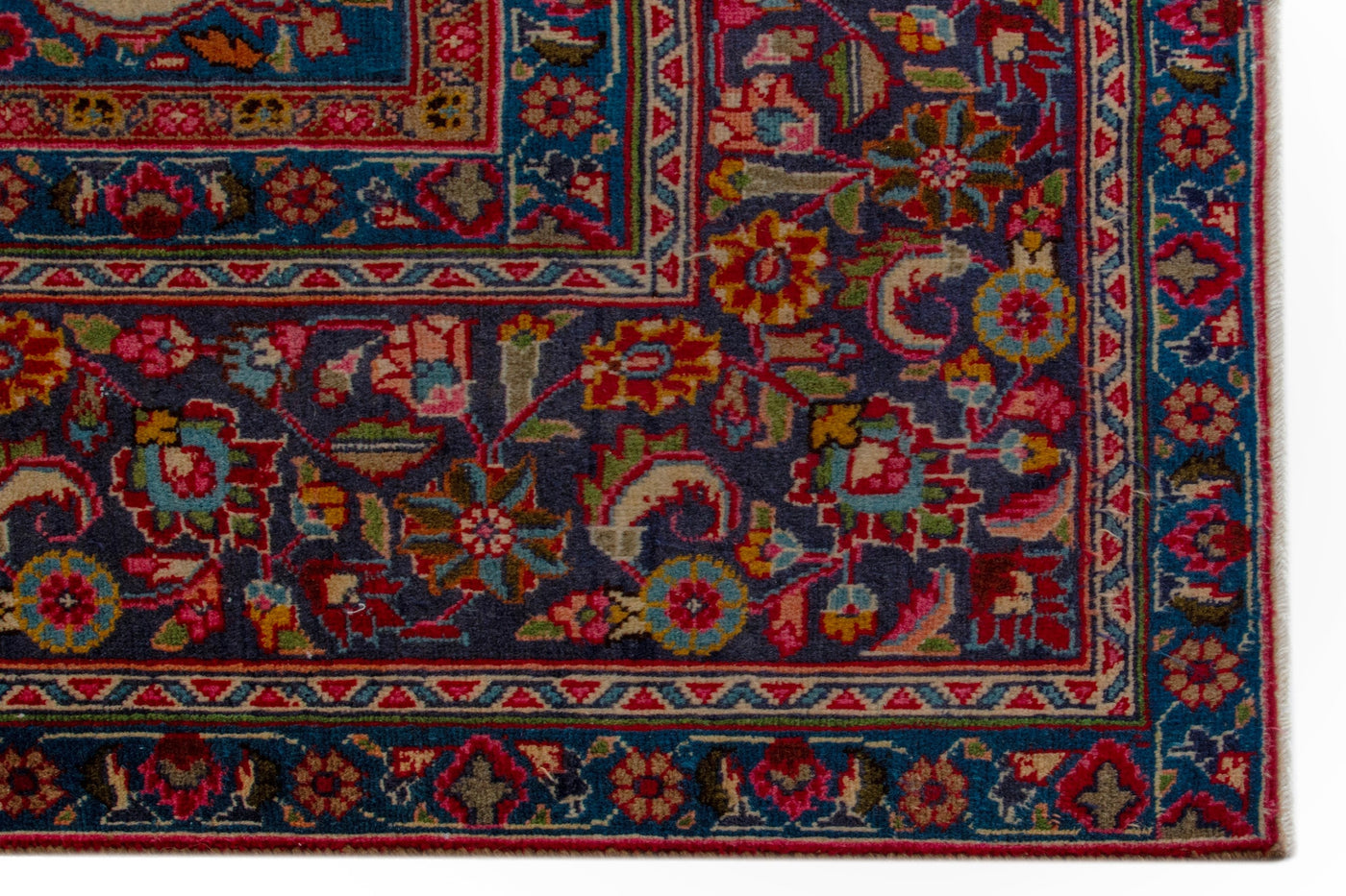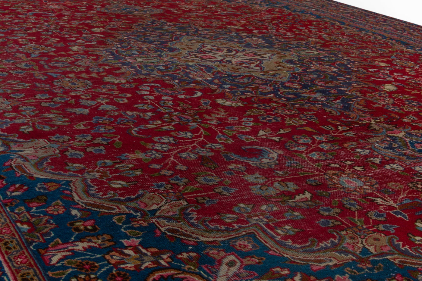 This one-of-a-kind, handmade vintage rug has been carefully restored, cleaned; age-related wear and natural imperfections are present.