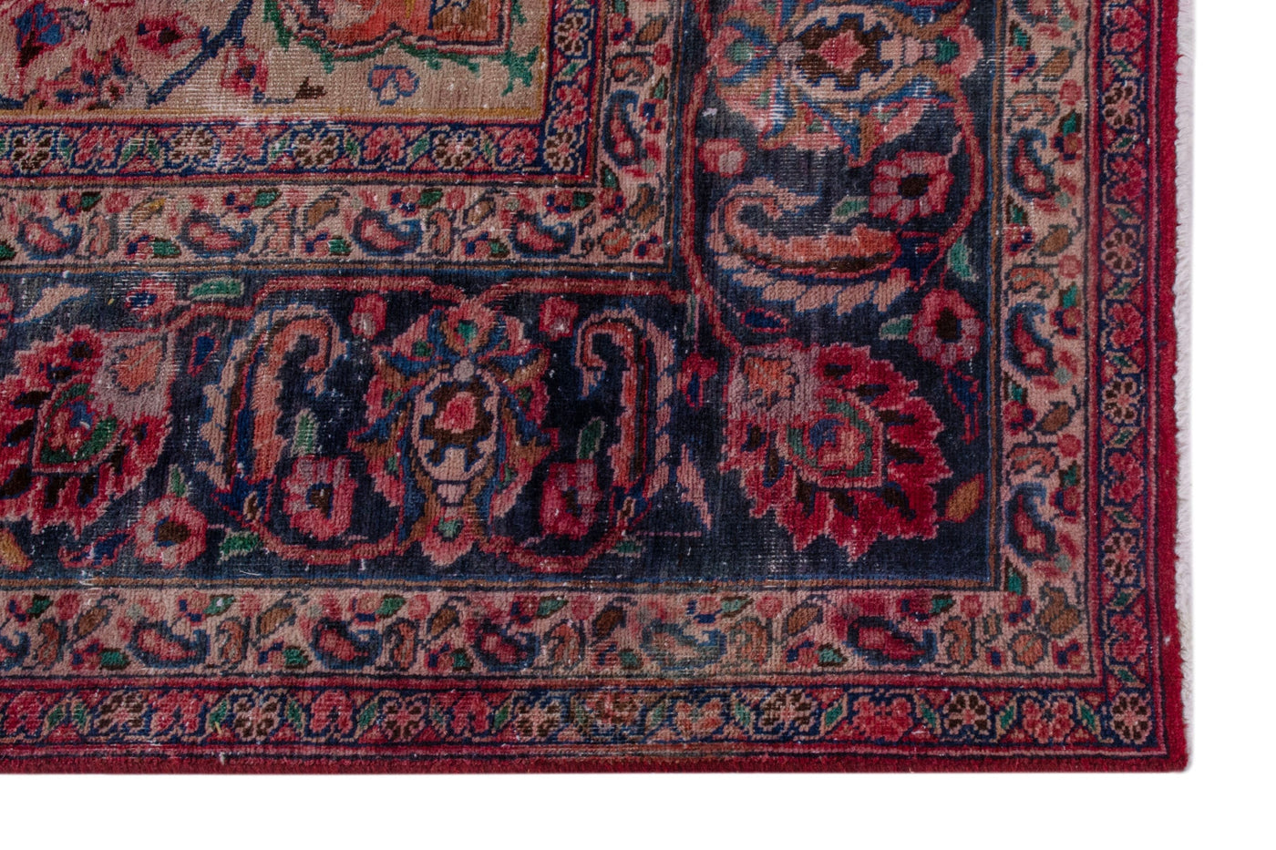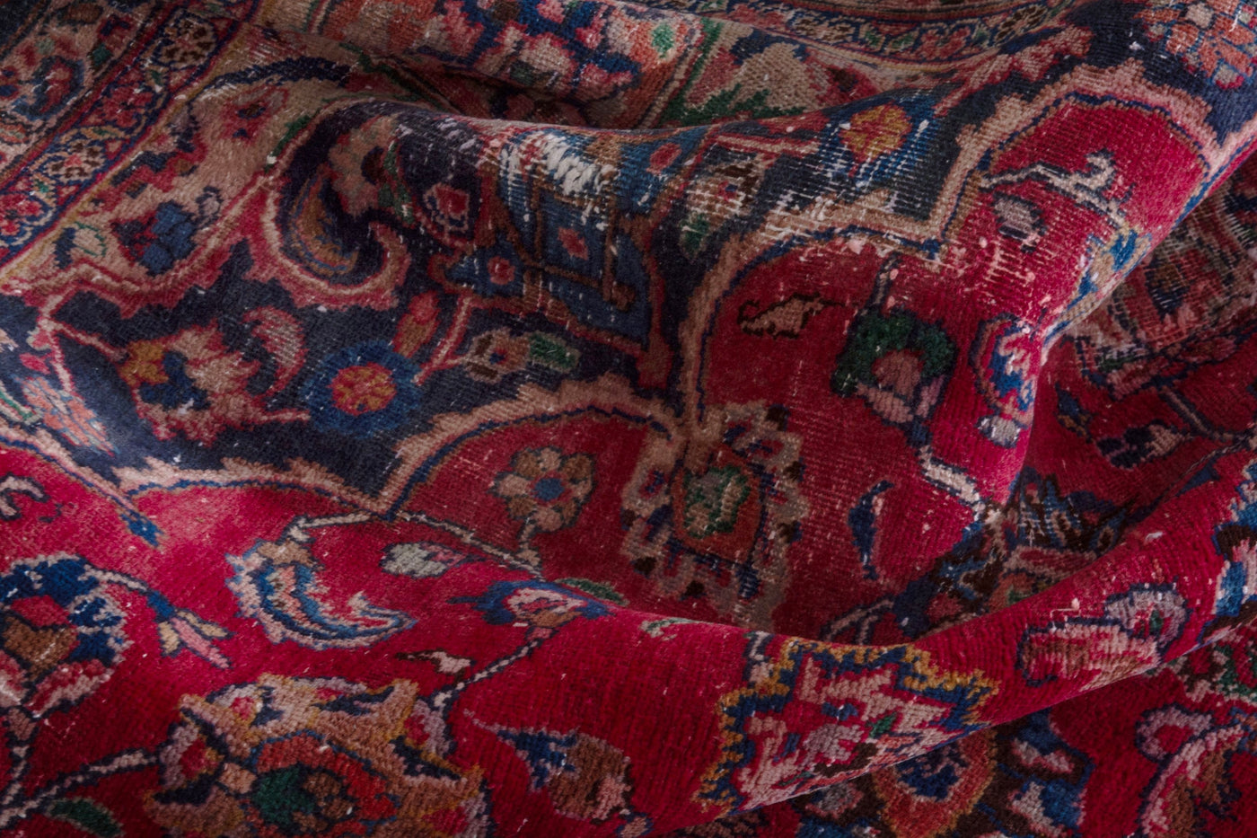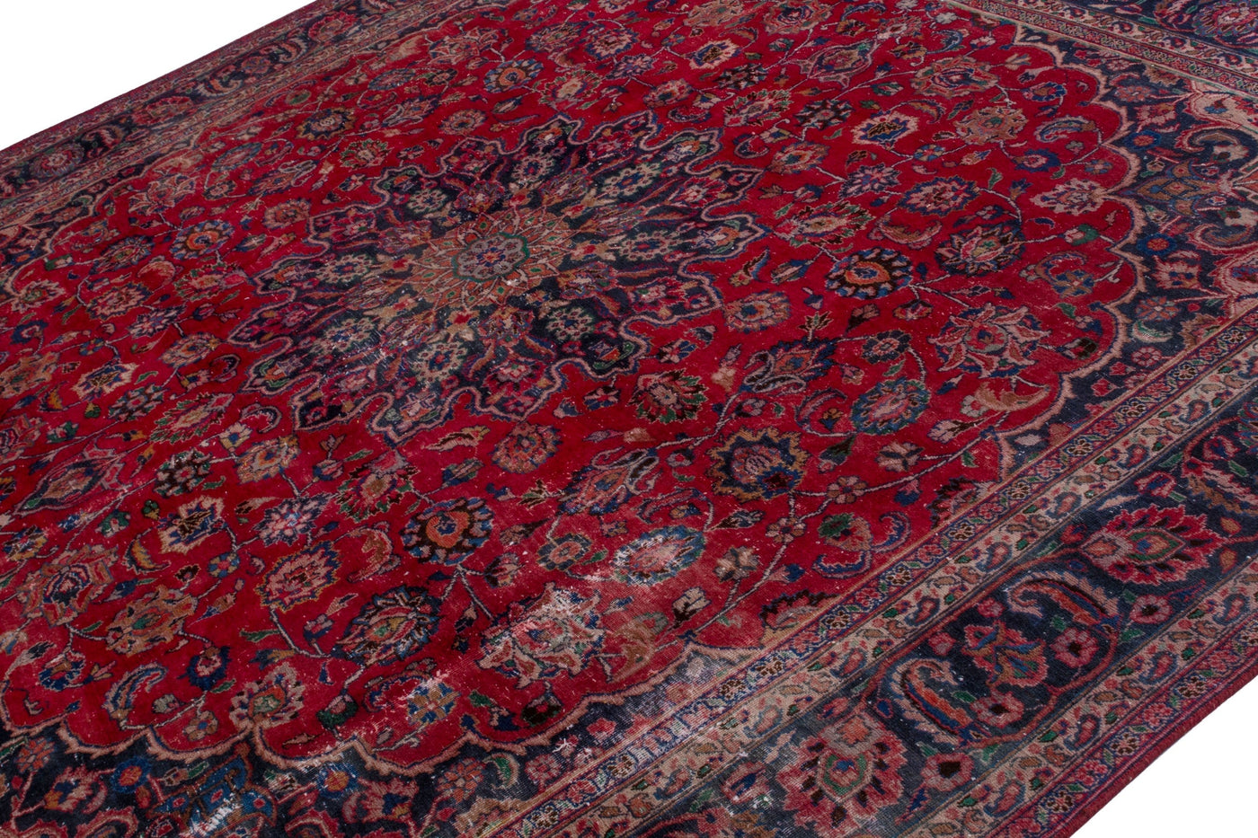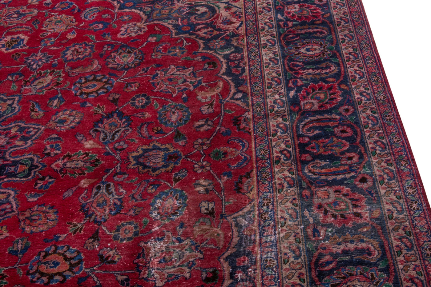 This one-of-a-kind, handmade vintage rug has been carefully restored, cleaned; age-related wear and natural imperfections are present.