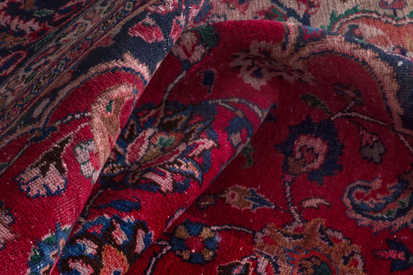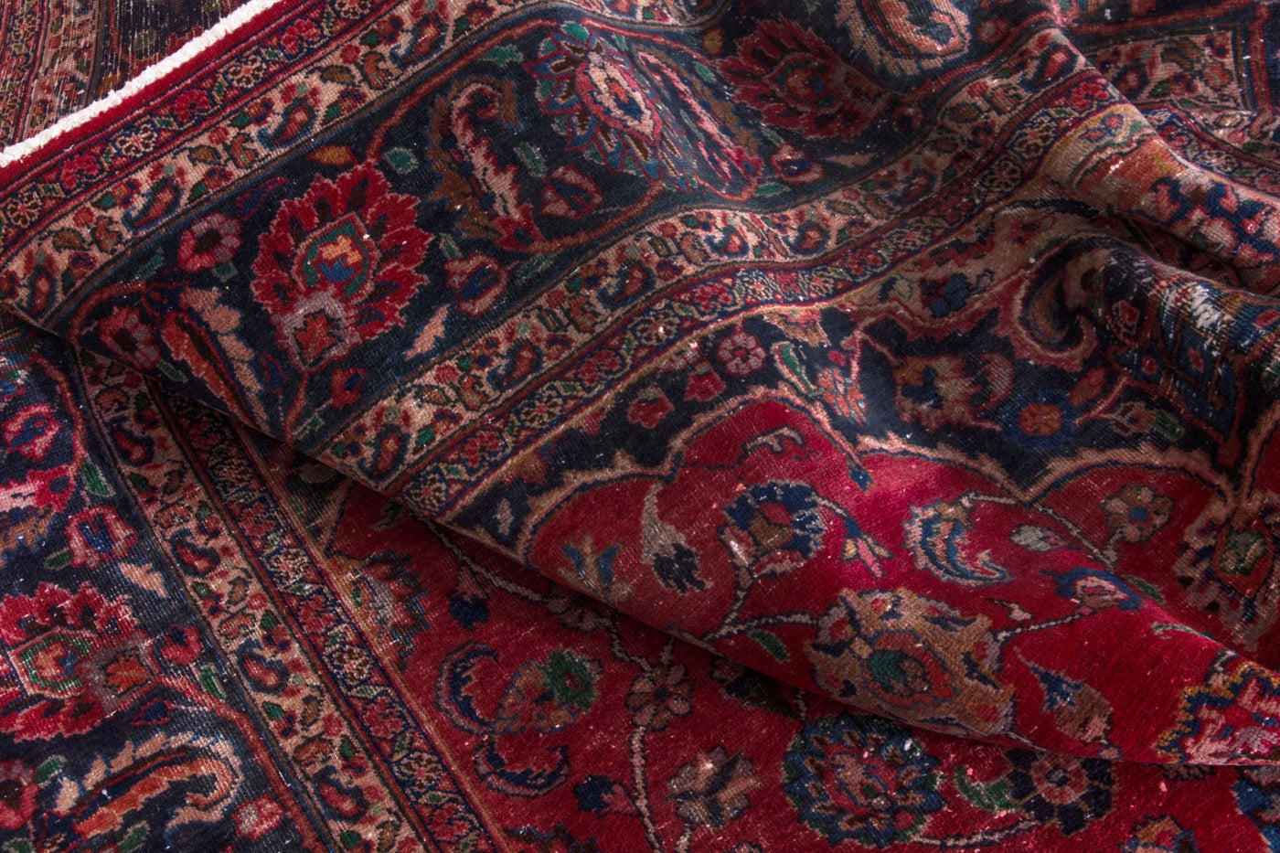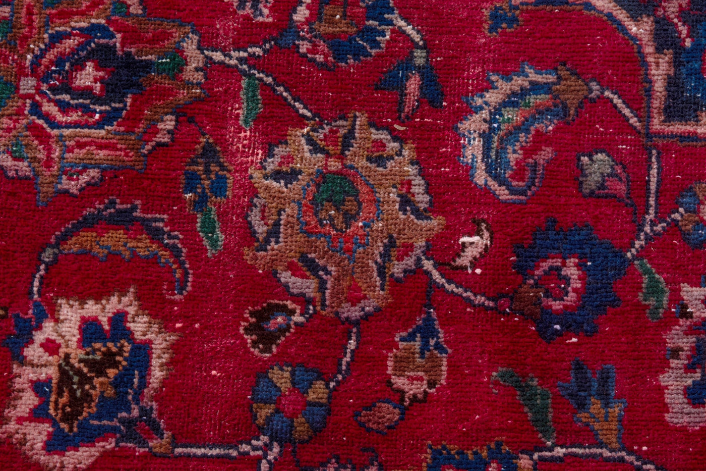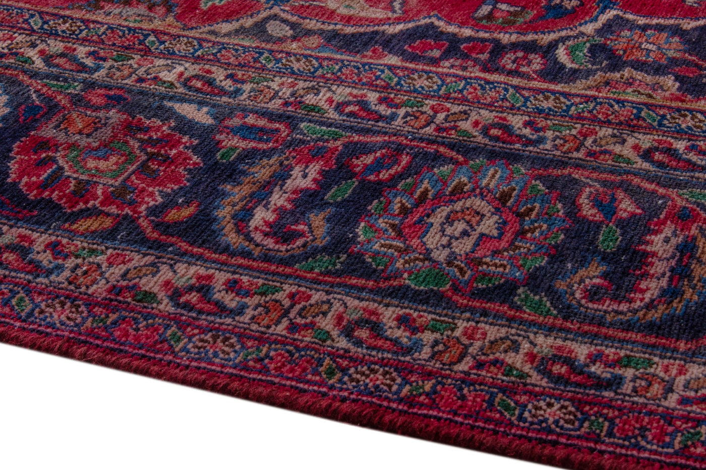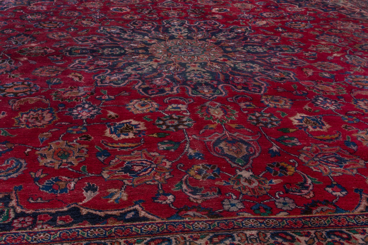 This one-of-a-kind, handmade vintage rug has been carefully restored, cleaned; age-related wear and natural imperfections are present.