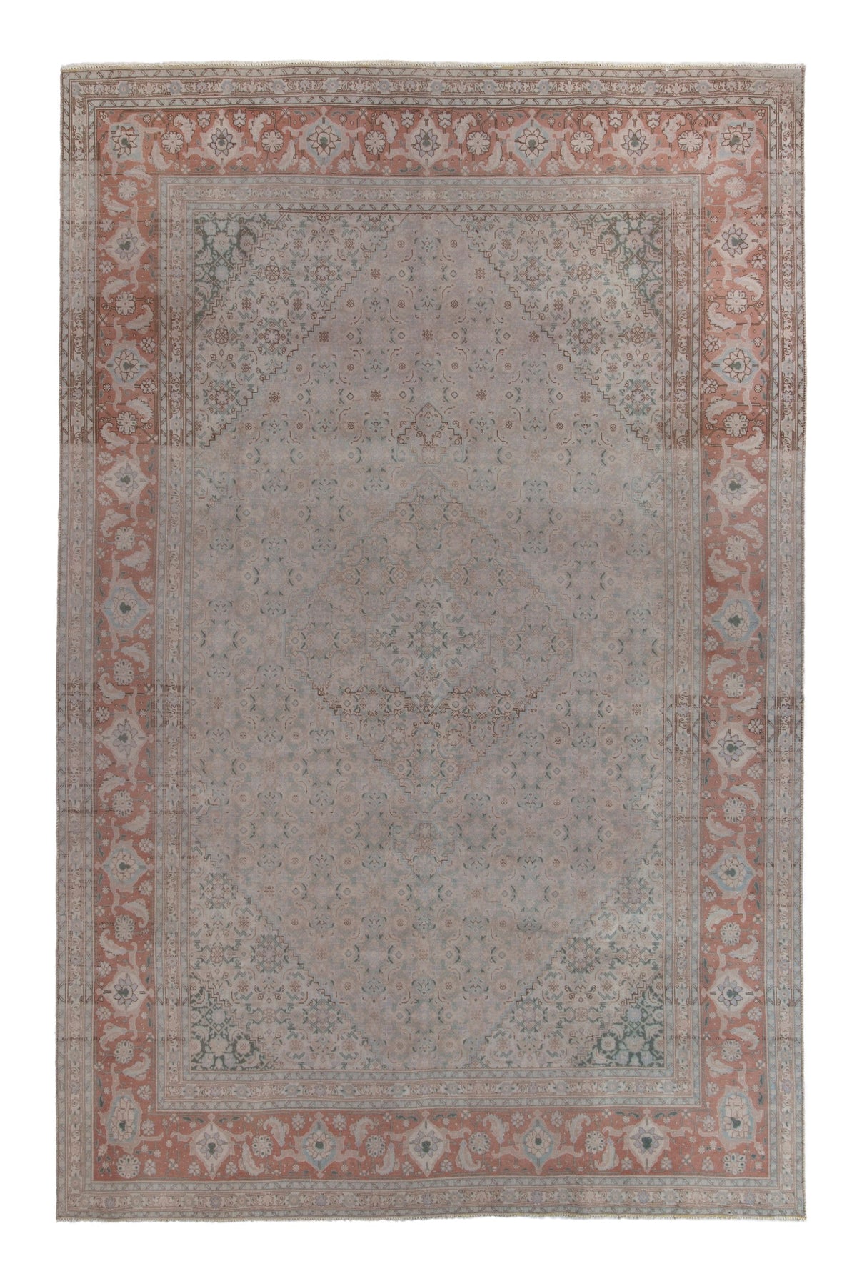 This one-of-a-kind, handmade vintage rug has been carefully restored, cleaned; age-related wear and natural imperfections are present.