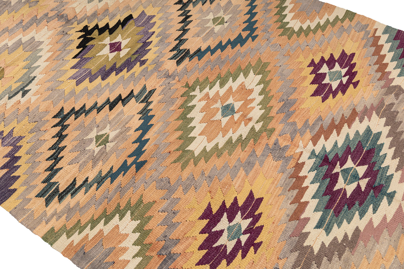 This one-of-a-kind vintage Turkish Kilim was made by hand in Afyon -Anatolian villages in the mid-20th century.