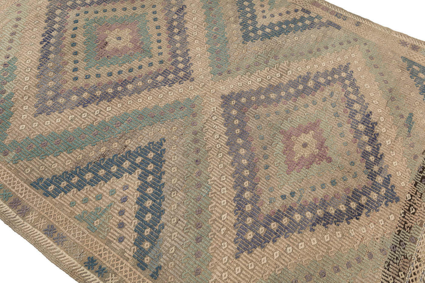 This one-of-a-kind vintage Turkish Kilim was made by hand in Denizli -Anatolian villages in the mid-20th century.