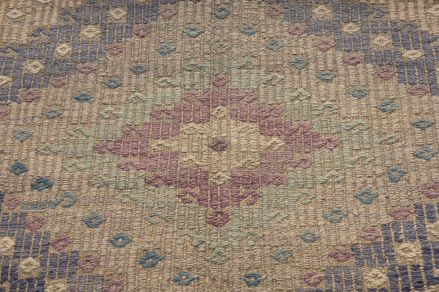Turkish vintage kilims were made 100% wool on cotton or wool foundation by female artisans in Anatolian villages in the early and mid-20th Century.