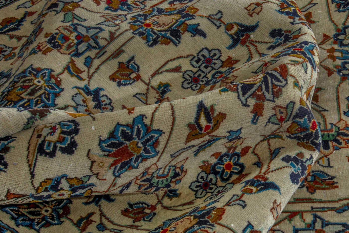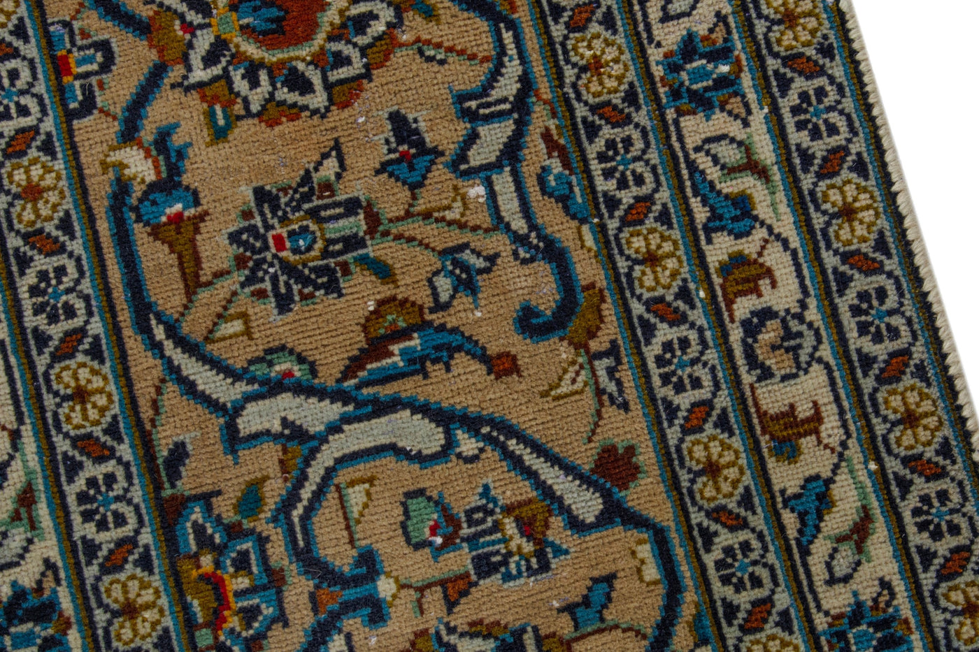 This one-of-a-kind, handmade vintage rug has been carefully restored, cleaned; age-related wear and natural imperfections are present.