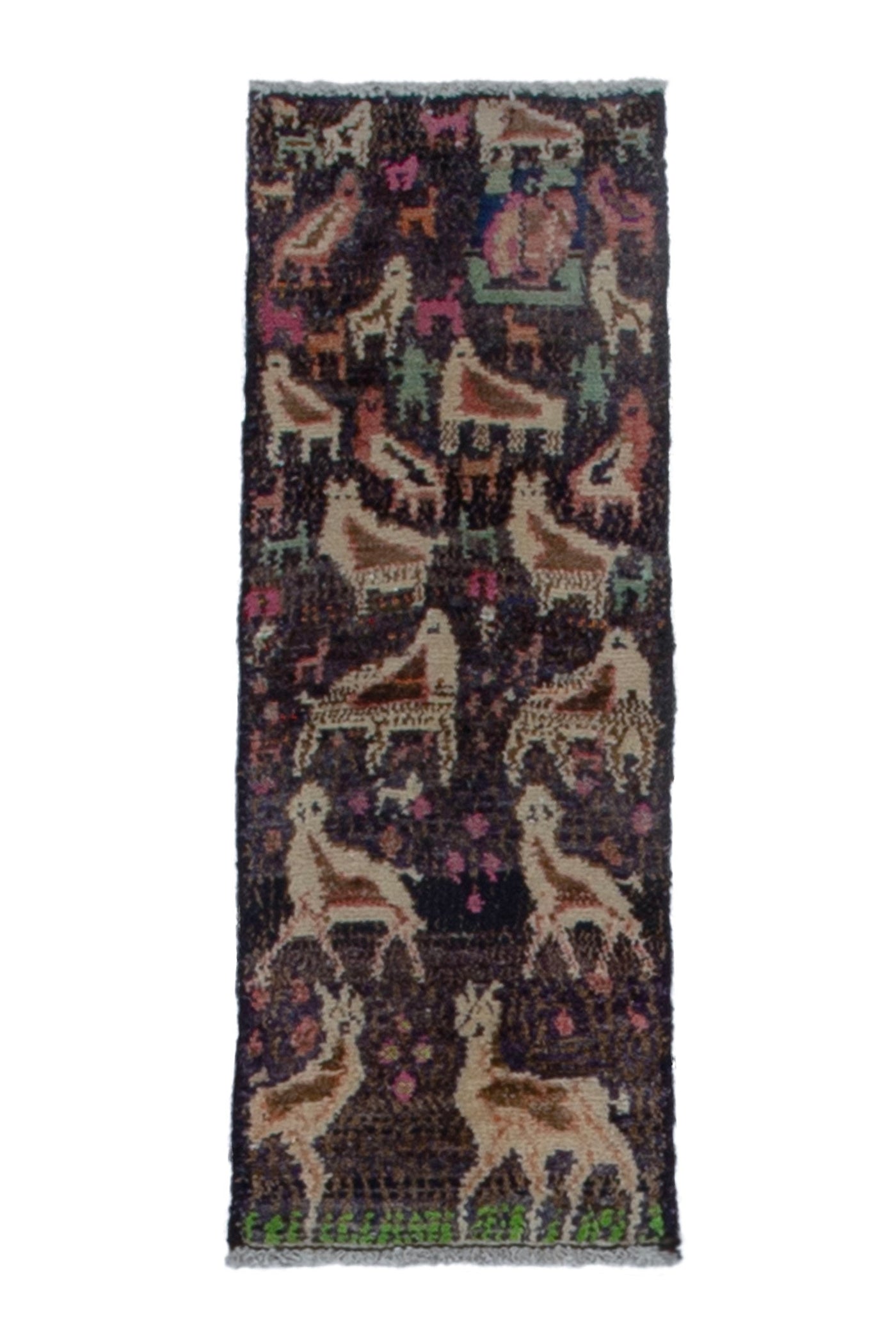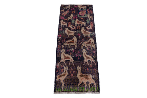 1'1" x 2'11" Vintage Animal Motifs Small Rug Sale