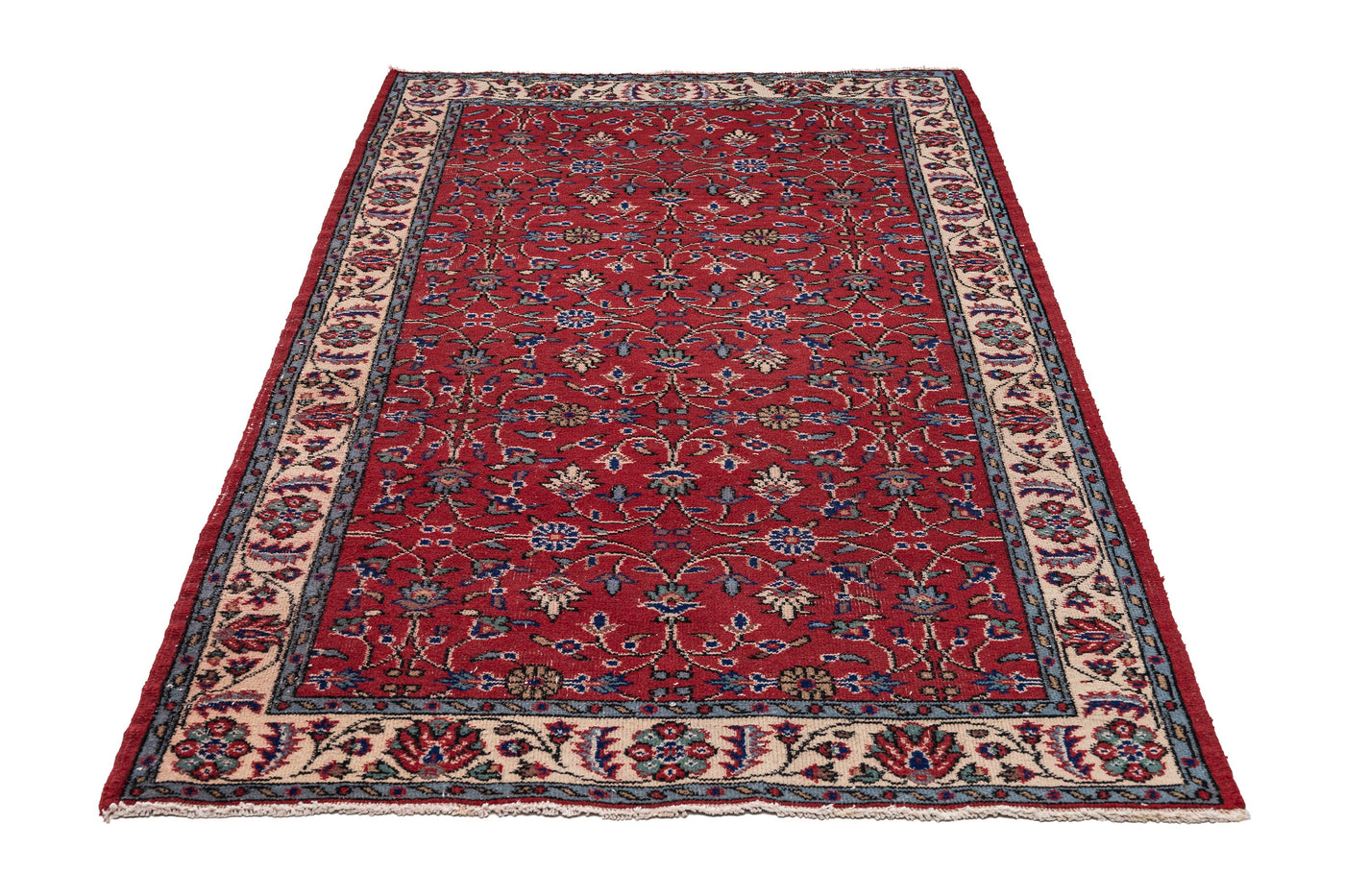 (4'1" x 6'10") Vintage Turkish Red Floral Rug