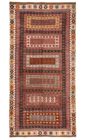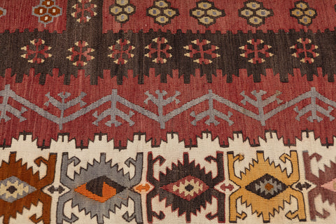 (6'7'' x 13'5'') Antique Handmade Turkish Kilim Area Rug