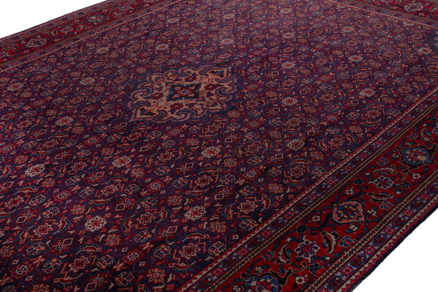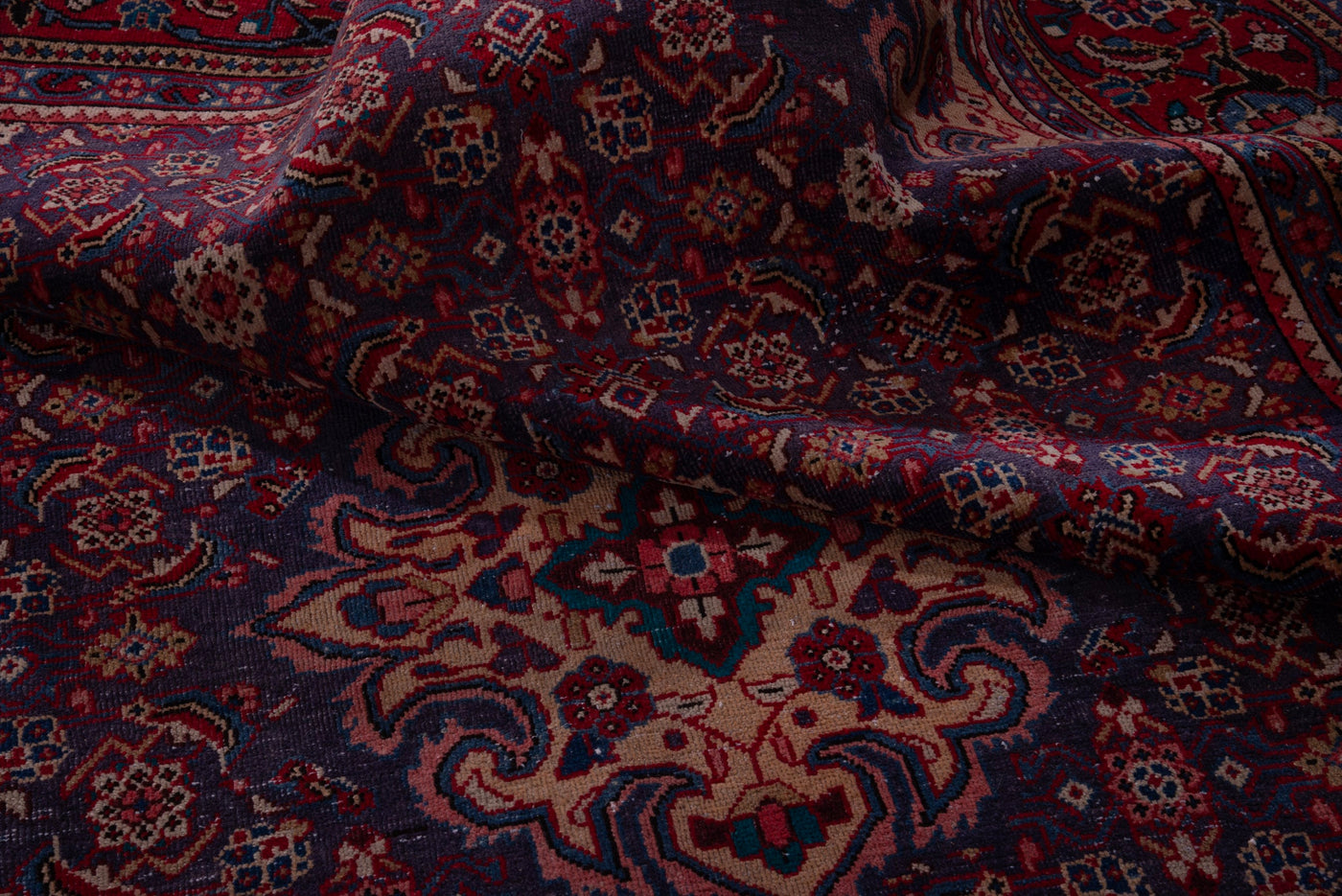 This one-of-a-kind, handmade vintage rug has been carefully restored, cleaned; age-related wear and natural imperfections are present.